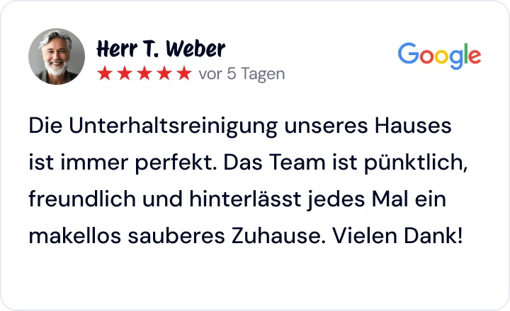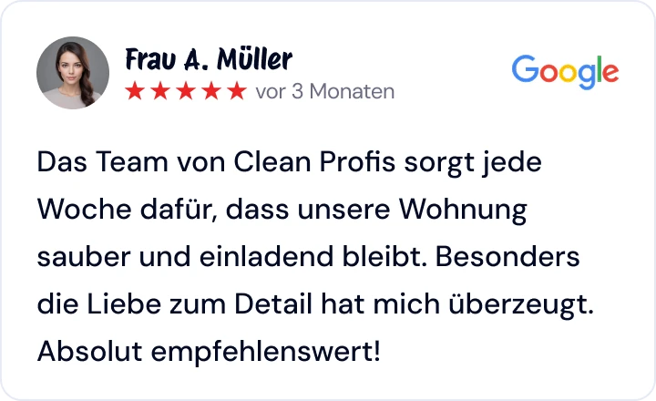 Die Häufigkeit hängt von Ihren individuellen Bedürfnissen ab. Für Büros und stark frequentierte Gewerbeflächen empfehlen wir tägliche oder wöchentliche Reinigungen. In Privathaushalten reichen oft ein bis zwei Termine pro Woche aus.